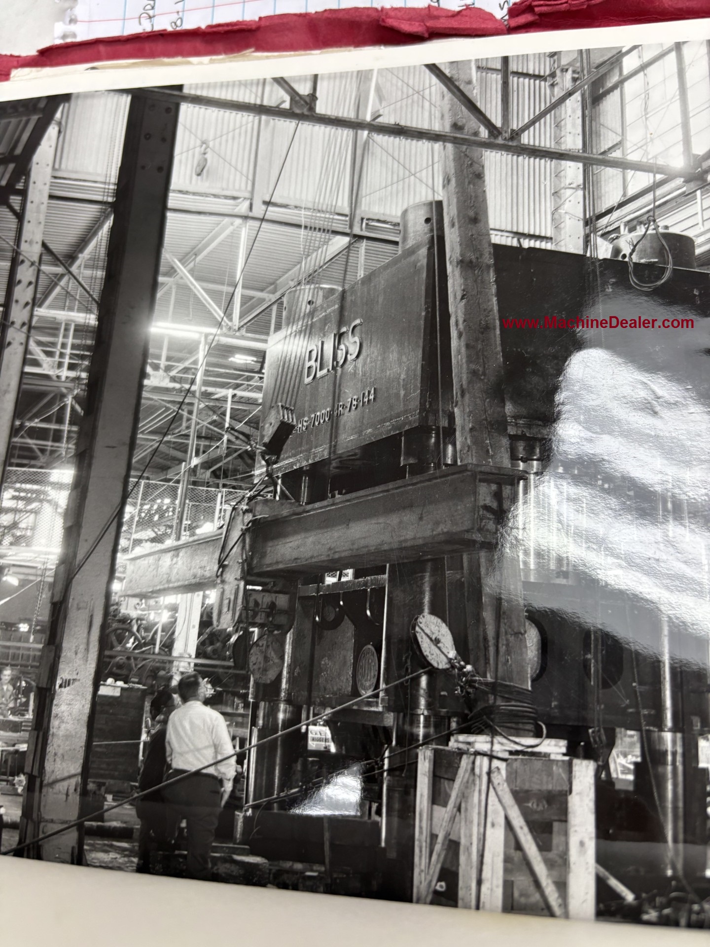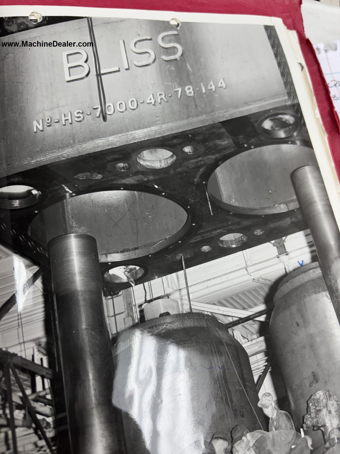 ONE PREOWNED BLISS 7000 TON VERTICAL HYDRAULIC DOWN ACTING FOUR POST GUIDED RAM PRESS MODEL HS-7000-4R-48-144 AGE 1954